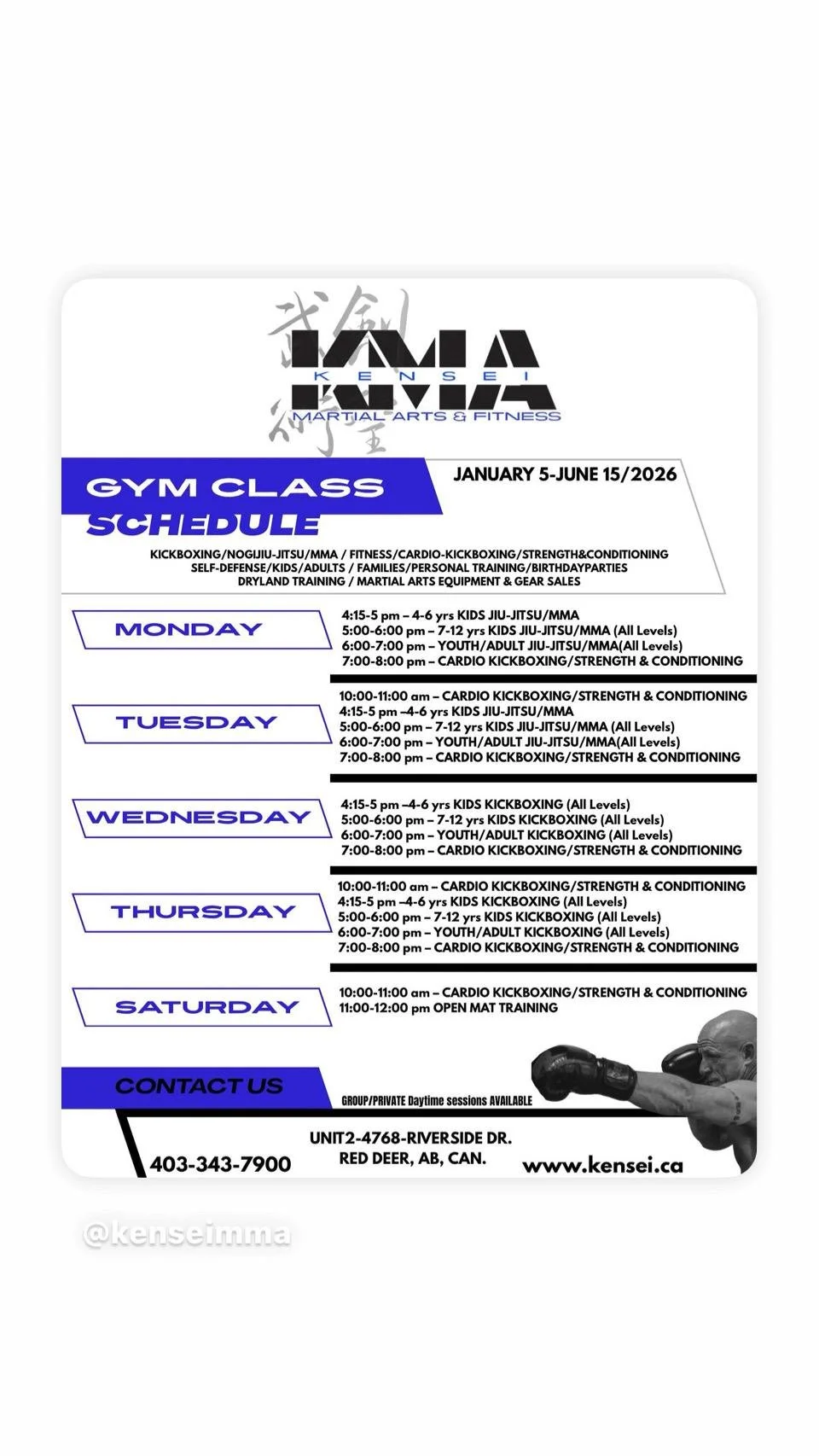 KIDS CLASSES KICKBOXING CARDIO KICKBOXING JIU-JITSU/MMA STRENGTH/CONDITIONING KENSEI Winter/Spring January 5-June 15/2026 Work With Us